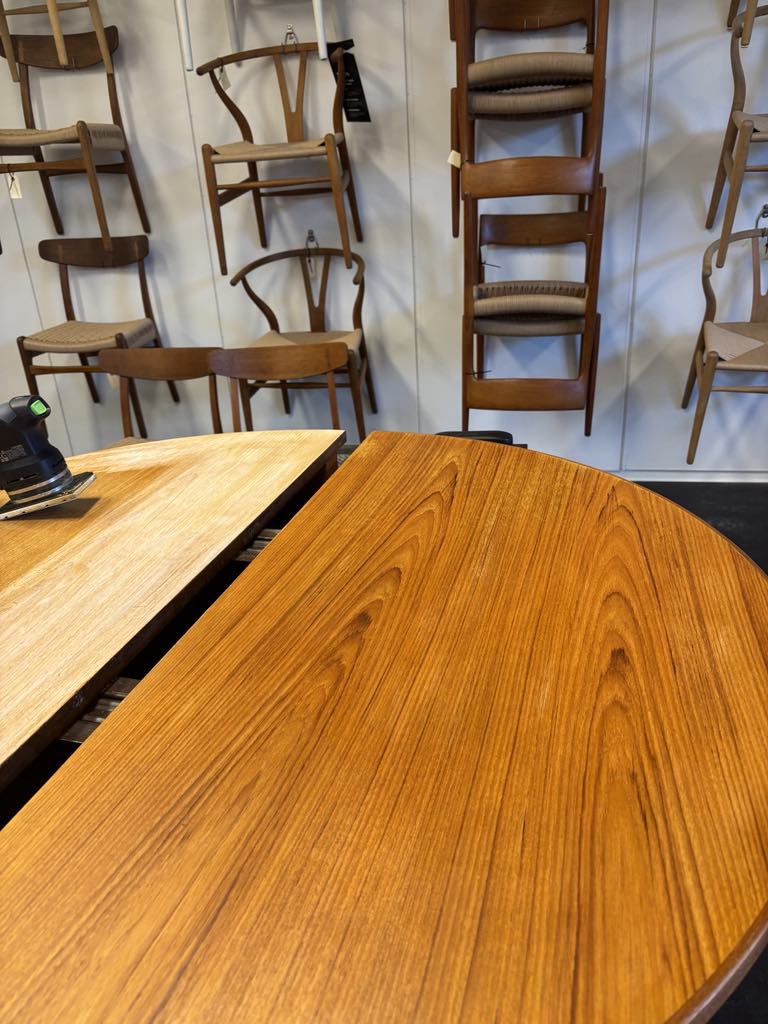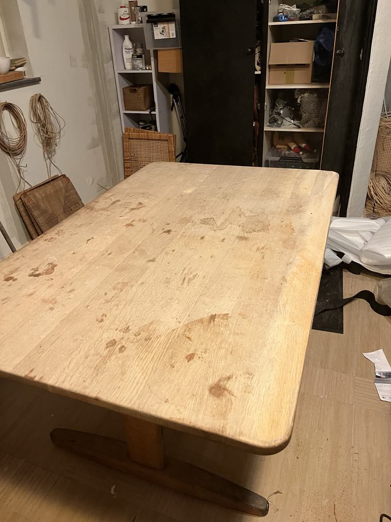 Å slipe et spisebord er en grundig prosess der den øverste delen av bordplaten forsiktig fjernes for å fjerne slitasjemerker, flekker og ujevnheter. Hensikten er å gjenopprette bordets naturlige utseende og forlenge levetiden. Vi jobber med både heltrebord og finérplater og tilpasser alltid behandlingen til materialet.